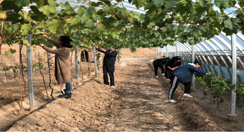 10月19日下午两点,葡萄与葡萄酒工程教研室党员师生一行5人,驱车前往甘州区龙渠乡墩源村进行葡萄栽培技术指导和实操管理。