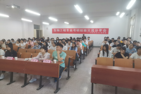 党史学习教育工作启动以来,学院坚持把“为师生办实事”实践活动作为党史学习教育的重要内容,切实推动党史学习教育成果转化成为学生服务的生动实践,真正做到以实事践初心,以服务暖人心。为进一步加强学风建设,发挥榜样力量,激发同学们的考研热情,营造浓厚学习氛围,6月16日,生物工程专业在8教107教室举办了考研经验交流会。会议由生物工程专业负责人主持,生物工程专业2019级、2018级近70名有考研意向的学生和任课教师参加了会议。