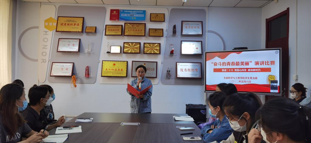 为庆祝中国共青团成立100周年,深入学习贯彻习近平总书记在中国人民大学考察调研时的重要讲话精神,5月6日下午,生命科学与工程学生党支部举办了“奋斗的青春最美丽”主题演讲比赛,支部全体党员通过线上线下的形式参加活动。