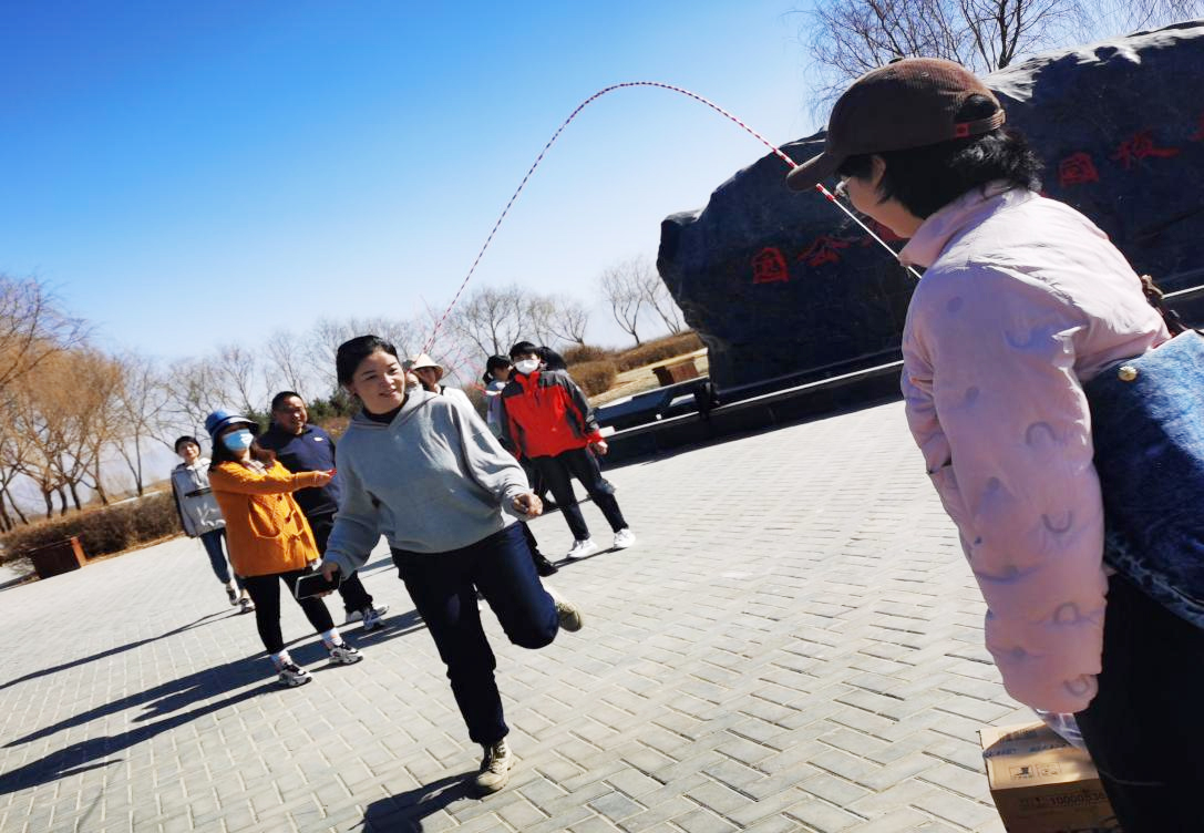 活动中,老师们按照规划路线,以矫健的步伐,饱满的精神,一路欢声笑语,呼吸着清新的空气,感受着和煦的阳光,交流着工作与生活情况,历时1小时到达终点。随后,组织大家进行了踢毽子、跳跳绳、投掷飞镖、掷沙包、双人背夹气球接力等比赛。老师们热情高涨,纷纷加入比赛中,享受着户外健康运动带来的身心愉悦。按照活动规则,优胜者获得了日用品小奖励。