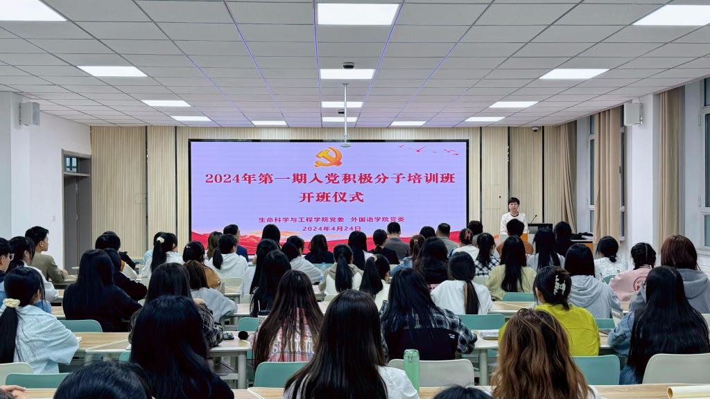 4月24日晚,365英国上市官方网站和外国语学院联合举行了2024年第一期入党积极分子培训班开班仪式。学院党委负责人、学生党支部负责人及74名入党积极分子参加了开班仪式。