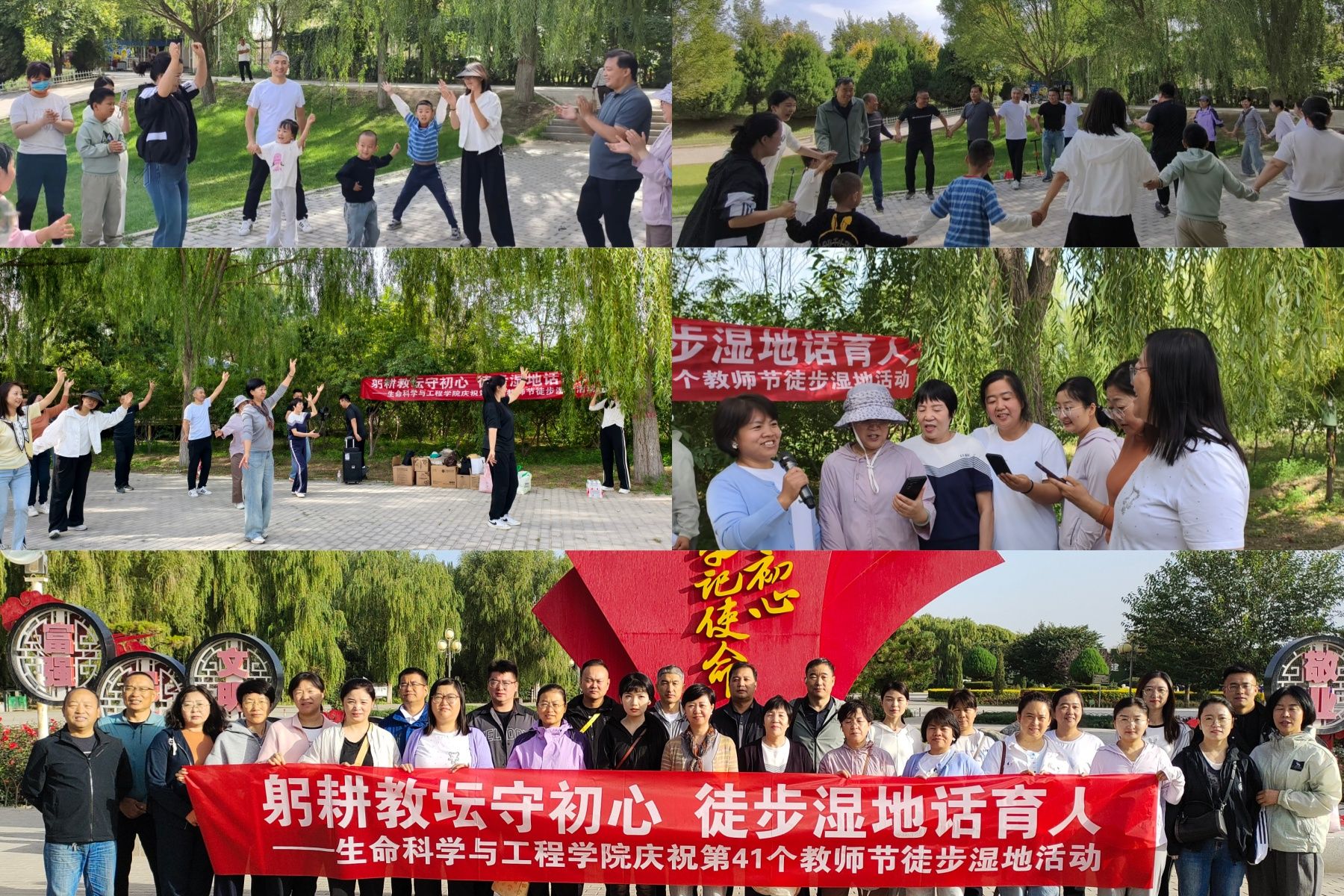 9月7日,365英国上市官方网站全体教职工齐聚润泉湖公园,以“躬耕教坛守初心,徒步湿地话育人”为主题,开展庆祝第 41 个教师节徒步湿地活动。