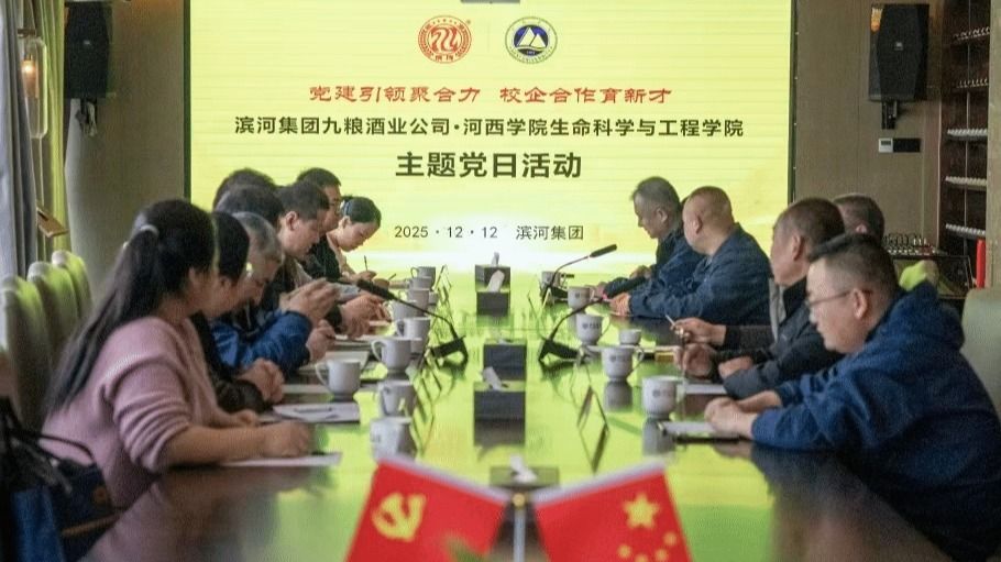 12月12日,365英国上市官方网站联合甘肃滨河食品集团九粮酒业公司开展“党建引领聚合力,校企合作育新才”主题党日活动。学院党政负责人带领教工党员与学术骨干走进企业生产一线,实地参观制酒车间、窖池群和技术研发中心,深入了解白酒酿造工艺与技术创新,并看望了正在企业实训的2023级酿酒工程专业本科生。