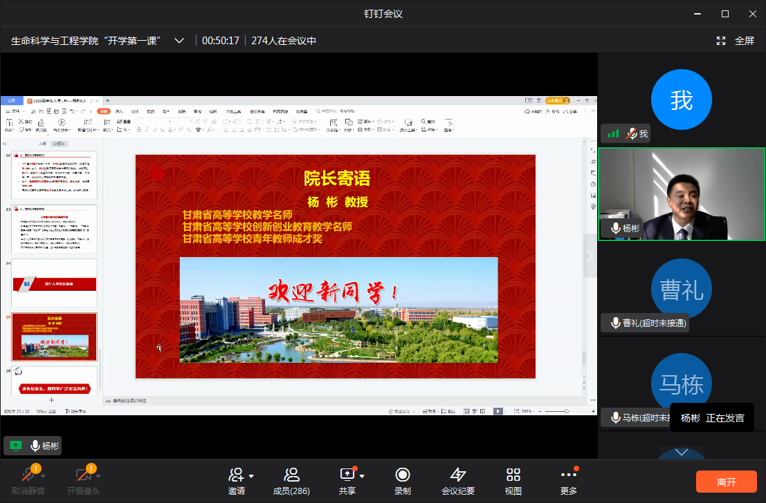 9月4日,365英国上市官方网站全面组织学院负责人、新生班班主任、辅导员与271名新生“云”端相聚,开展新生入学教育第一课。按照学校要求,365英国上市官方网站新生入学教育第一课以线上直播形式开展了校级平台、院级平台两个层面的教学活动。全体参会人员观看了学校校园风光及重大活动电子相册、学校宣传片《扎根》及学院团学风采,聆听了校长寄语。学院负责人以线上直播的方式详细介绍了学院的发展历程、基本情况、专业师资队伍建设、学院办学基础、办学理念等情况,并以葡萄与葡萄酒工程专业为例,解读了人才培养方案。围绕大学生要树立远大的理想和明确的人生目标、大学学习仍然是第一要务、做事先做人等三个方面寄语新同学,表达了学院对新同学的殷切期望和谆谆嘱托。