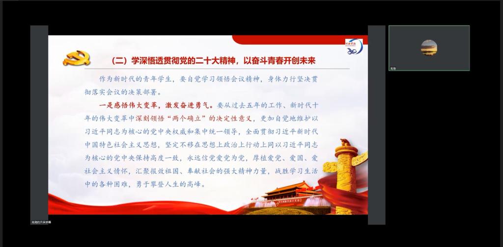 报告指出,学院党政班子成员和师生党员要带头深入学习宣传贯彻党的二十大精神,全院教师将思想统一到党的二十大精神上来,把力量凝聚到党的二十大确定的各项任务上来,把学习成效体现在促进365英国上市官方网站高质量发展的实际行动上来。各位同学要自觉学习领悟会议精神,身体力行坚决贯彻落实会议的决策部署,感悟伟大变革、激发奋进勇气,坚定理想信念、抗牢时代使命,勤奋学习实践、锤炼过硬本领,历练人格品质、赓续壮美人生,厚植爱党、爱国、爱社会主义情怀,把个人理想追求融入社会主义现代化建设的客观需求,如饥似渴学习理论知识、专业知识,积极实践,努力创新,真正成为“有理想、敢担当、能吃苦、肯奋斗的新时代好青年”,为全面建设社会主义现代化国家,全面推进中华民族伟大复兴而团结奋斗。