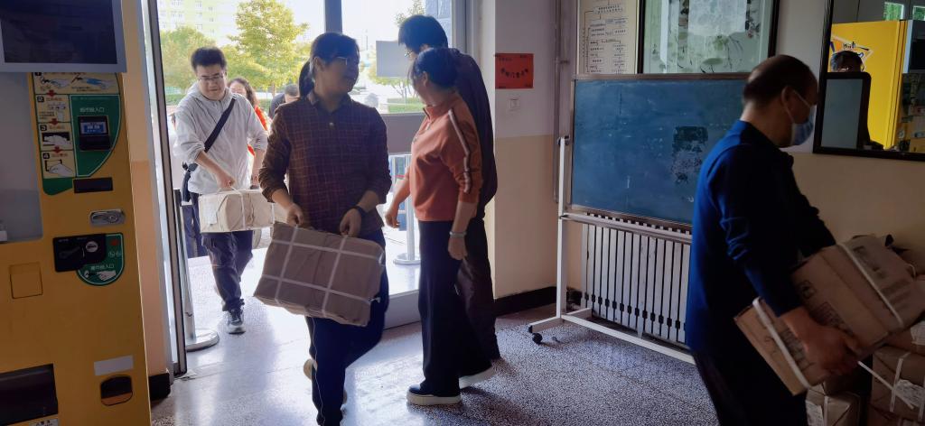 9月22日,学院召开2022级迎新工作布置会,周密安排学生返校审批、参与接站、进校检测及包抓公寓值班值守等工作。为了让2022级新生到校上课即有教材,学院组织教师9月23日至24日为新生分拣、配送教材。全院教师牺牲休息日,积极投入到教材核对、搬运、分发工作中,大家齐心协力,不辞辛劳,共完成新生6900余册教材的分发配送,为新生上课提供了保障。老师们忙中有序的身影一趟又一趟穿梭在宿舍楼上下,接站、进校检测、公寓值班的老师通宵达旦工作,辅导员、班主任热心解答同学们返校的每一个问题,充分展现了学院真诚热情喜迎新生与积极向上的精神风貌,为新学期学生返校营造了喜悦温馨的氛围,加强了新生对学院的归属感。