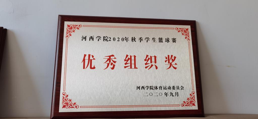 河西学院2020年秋季学生篮球赛优秀组织奖