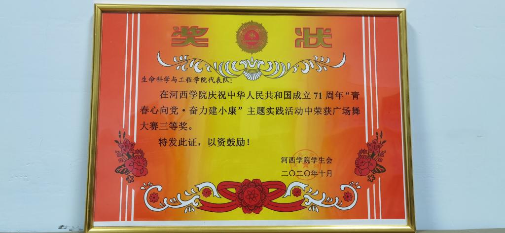 河西学院庆祝中华人民共和国成立71周年“青春心向党·奋力建小康”广场舞大赛三等奖