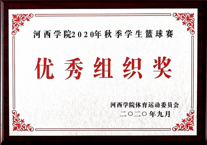 河西学院2020年秋季学生篮球赛优秀组织奖